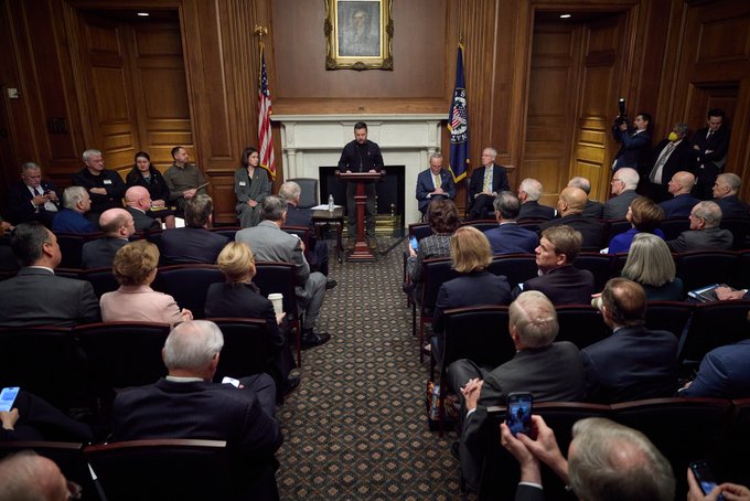 როგორც ზელენსკი აღნიშნავს, მან აშშ-ის სენატის წევრებს უკრაინის ამჟამინდელი სამხედრო და ეკონომიკური მდგომარეობა აცნობა და აშშ-ის სასიცოცხლო მხარდაჭერის შენარჩუნების მნიშვნელობაზე ისაუბრა.